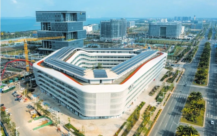 1月5日,位于海口江东新区的江东发展大厦项目展露新颜,外观整体呈“鸟巢”之形、“流云”之态。该项目外立面幕墙板块配置超大、超厚双夹胶中空超白low-e双银玻璃,既环保节能又感观通透,实现人与海、城市与自然的共融,顶部还分布节能低碳的太阳能光伏发电系统。