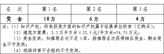 (三)方案征集费用构成:由方案奖金、方案深化费两部分构成,即名次奖金(20万元)+方案深化费(54.75万元)=总费用(74.75万元)。